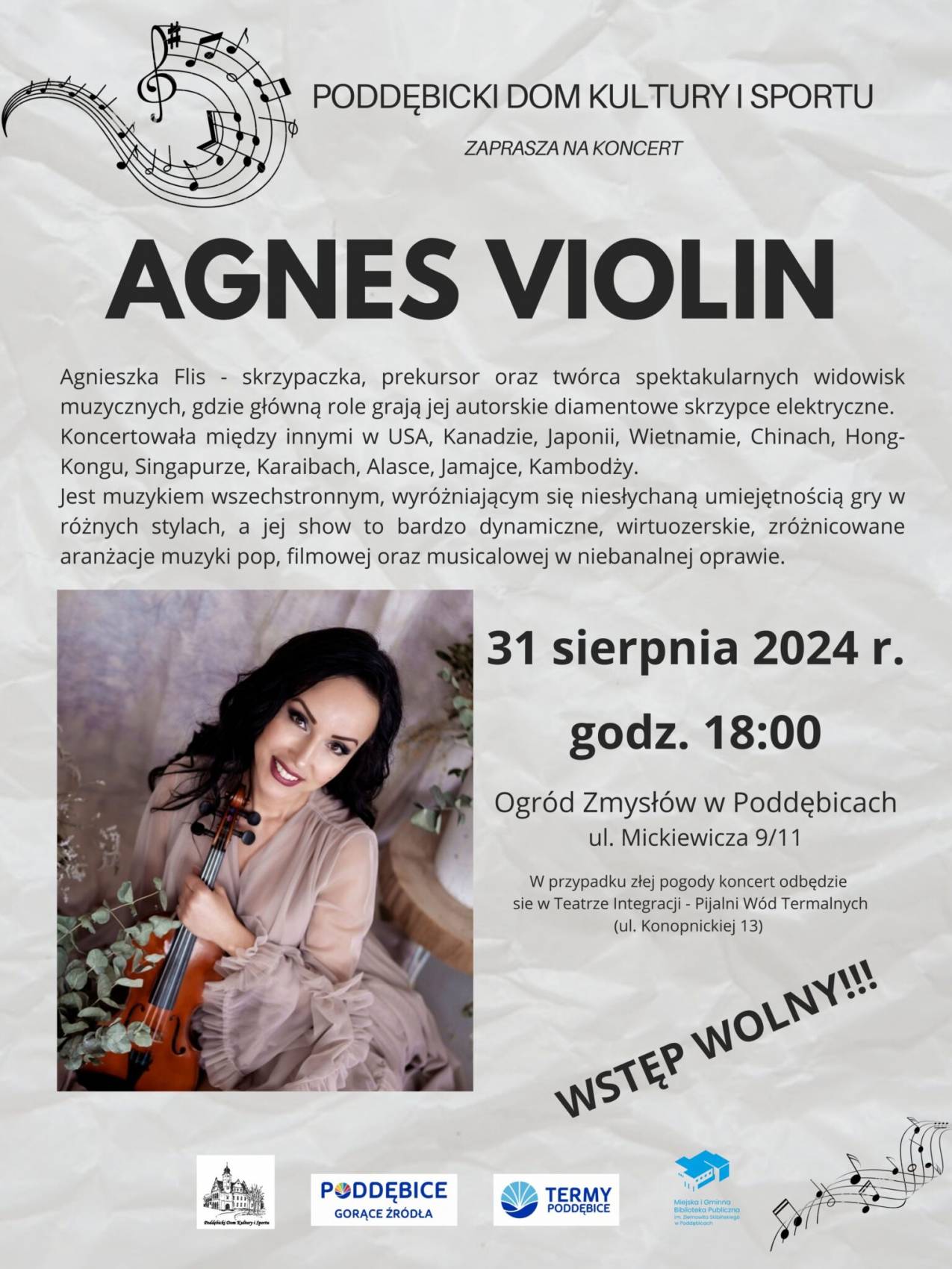 Poddębicki Dom Kultury i Sportu zaprasza na koncert Agnes Violin, czyli skrzypaczki Agnieszki Flis.
