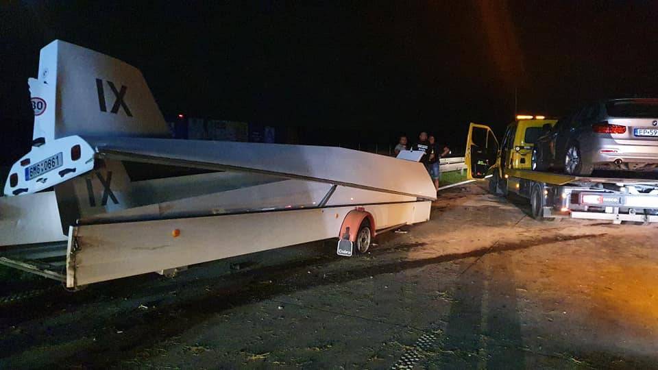 - Kierowca Opla, uderzył w przyczepę z szybowcem - ta odrzucona siłą zderzenia uderzyła w BMW, a Skoda przygniotła pasażera z Audio - wyjaśnia dalej Gajewska.