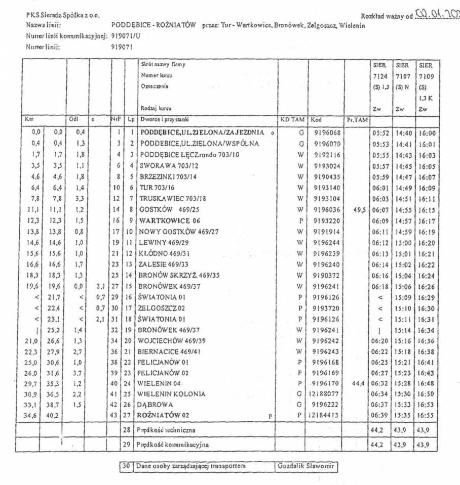 Powiat Poddębicki wychodząc naprzeciw oczekiwaniom mieszkańcom informuje, że z dniem 2 stycznia 2024 roku będzie funkcjonowała dotychczasowa linia komunikacyjna Poddębice - Rożniatów.