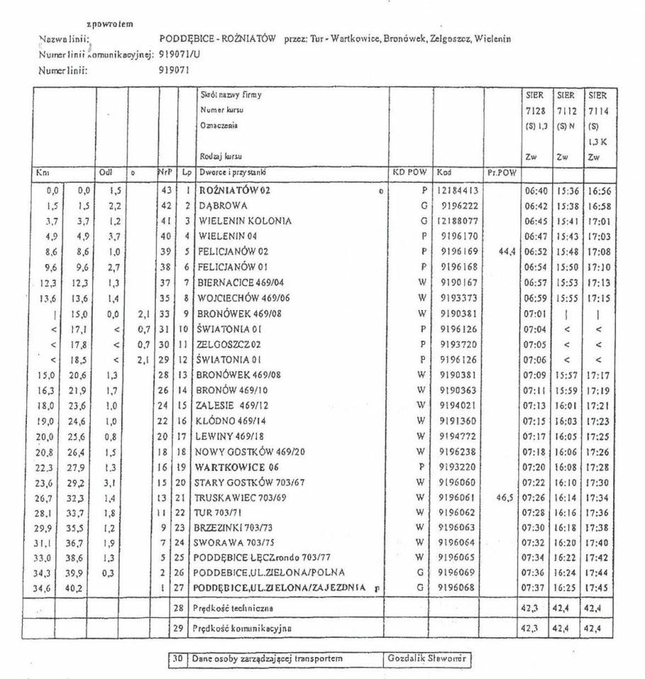 Linia obejmuje 37,40 km i przebiega przez miejscowości: Poddębice, Sworawa, Tur, Truskawiec, Gostków, Wartkowice, Bronówek, Zelgoszcz, Wielenin i Rożniatów. Linia będzie obsługiwana przez Przedsiębiorstwo Komunikacji Samochodowej Sieradz Sp. z o.o.