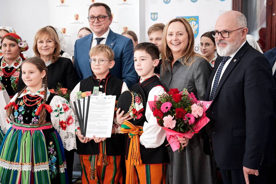 - A folklor to jest opowieść o nas samych. I to od nas zależy, jak ją napiszemy. Trzymam mocno kciuki, abyście napisali piękną historię, którą z dumą będziemy przekazywać kolejnym pokoleniom - mówiła marszałek Joanna Skrzydlewska zwracając się m.in. do twórczyń ludowych i dzieci z zespołu ludowego Koderki, które towarzyszyły władzom Łowicza przy podpisaniu umowy na dofinansowanie Centrum Folkloru.