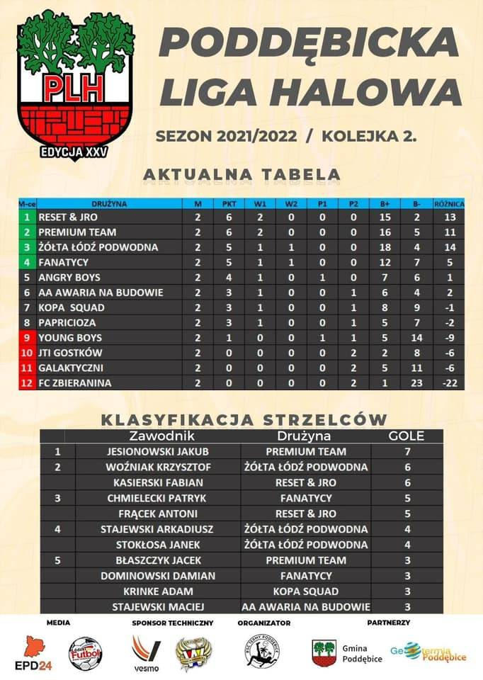 Tylko dwie drużyny rywalizujące w Poddębickiej Lidze Halowej mają na swoim koncie komplet punktów. Reset&JRO oraz Premium Team przewodzą w ligowej stawce, ale po piętach depczą im zawodnicy Żółtej łodzi Podwodnej i Fanatyków. Czy po piątkowych meczach dojdzie do zmian w czołówce? Przekonamy się już wkrótce.