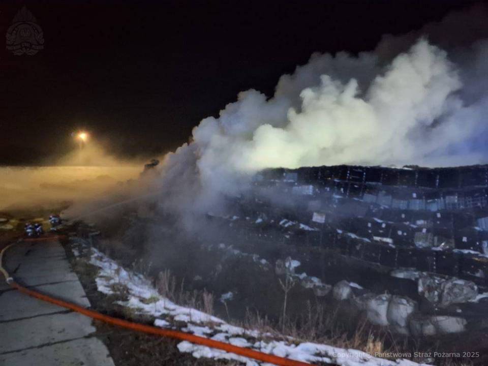Duży pożar na składowisku w powiecie radomszczańskim. Płonie hałda ze zbiornikami typu "mauser". Na miejscu pracuje kilkanaście zastępów straży pożarnej, specjalistyczna grupa chemiczno - ekologiczna i dronowa. Jak przekazuję PSP w Radomsku trwa walka o to, by ogień nie rozprzestrzenił się na kolejne fragmenty składowiska.