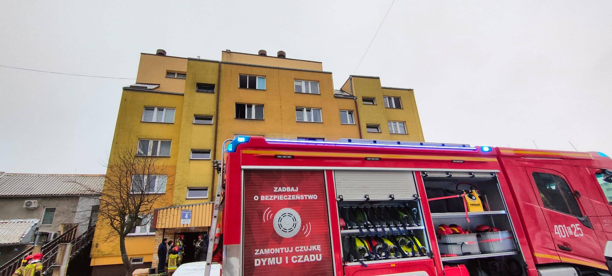 W momencie przyjazdu pierwszych zastępów większość mieszkańców bloku była już poza budynkiem.