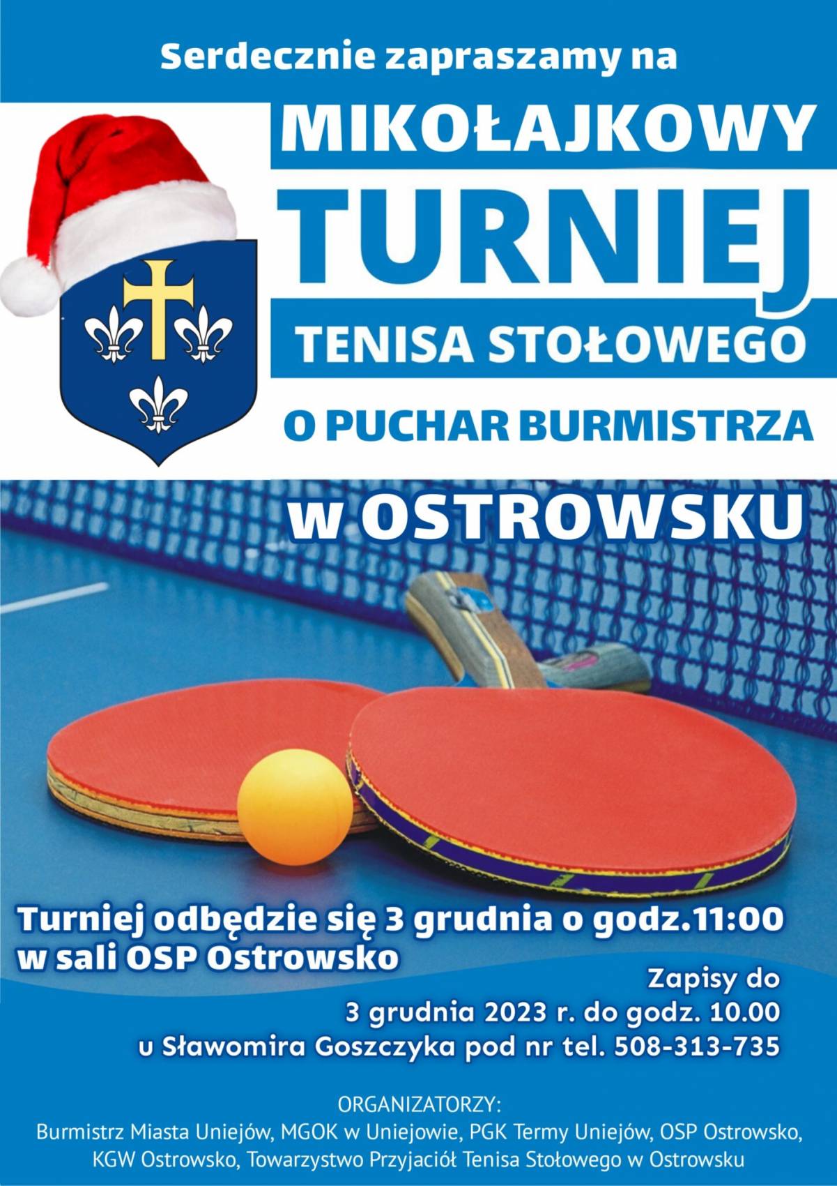 Na niedzielę poprzedzającą mikołajki Towarzystwo Przyjaciół Tenisa Stołowego w Ostrowsku zaplanowało kolejne amatorskie zawody w ping ponga. Dziś ruszyły zapisy. Poniżej wyjaśniamy co należy zrobić, aby znaleźć się na liście startowej.