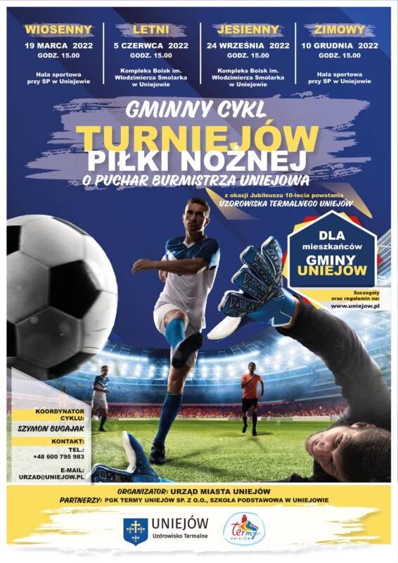 Burmistrz Uniejowa serdecznie zaprasza do wzięcia udziału w drugim, letnim turnieju piłki nożnej. Okazją do rozgrywek piłkarskich jest Jubileusz 10cio lecia Uzdrowiska Termalnego Uniejów.